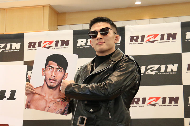 出場が決定した萩原京平、対戦相手のアグォン(パネル)