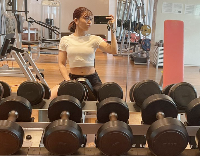 ぱんちゃんが11日に公開した、ヘソ出し短パン筋トレ姿(ぱんちゃんTwitterより)