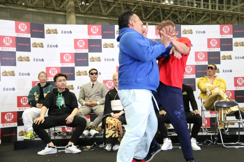 天田は両手を出して突っぱねる