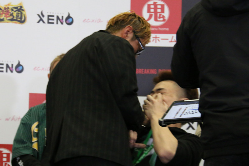 おでんツンツン男(左)が10人ニキに寿司を押し付ける