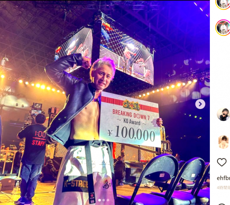 KO賞を受賞したダンチメン・あつきは、ブレイキングダウン最強を名乗れるか?(『大野篤貴 【ダンチメンあつき】』インスタグラム)