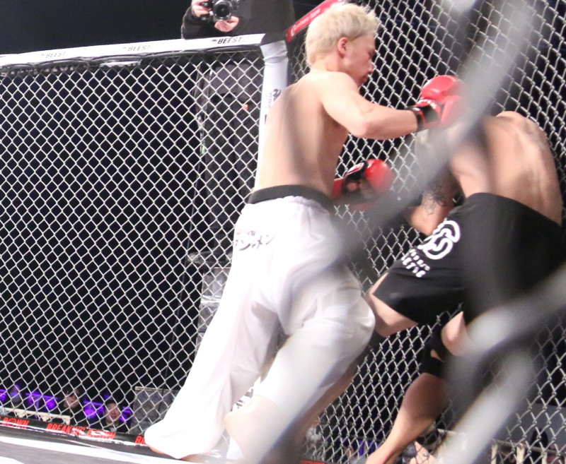 あつきはパンチと蹴り連打二度目のダウンを奪う