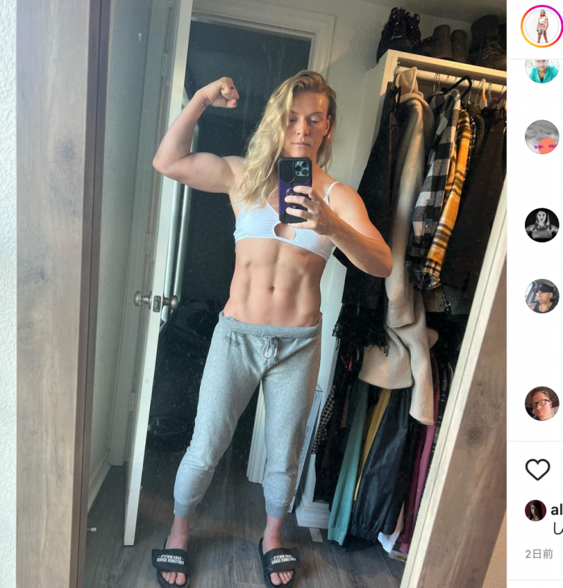 鍛えたムキムキ腹筋でマッスルポーズ!@allhailmmaより