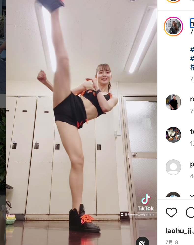 空手出身らしくハイキックが簡単に飛び出す(宮原華音インスタグラム)