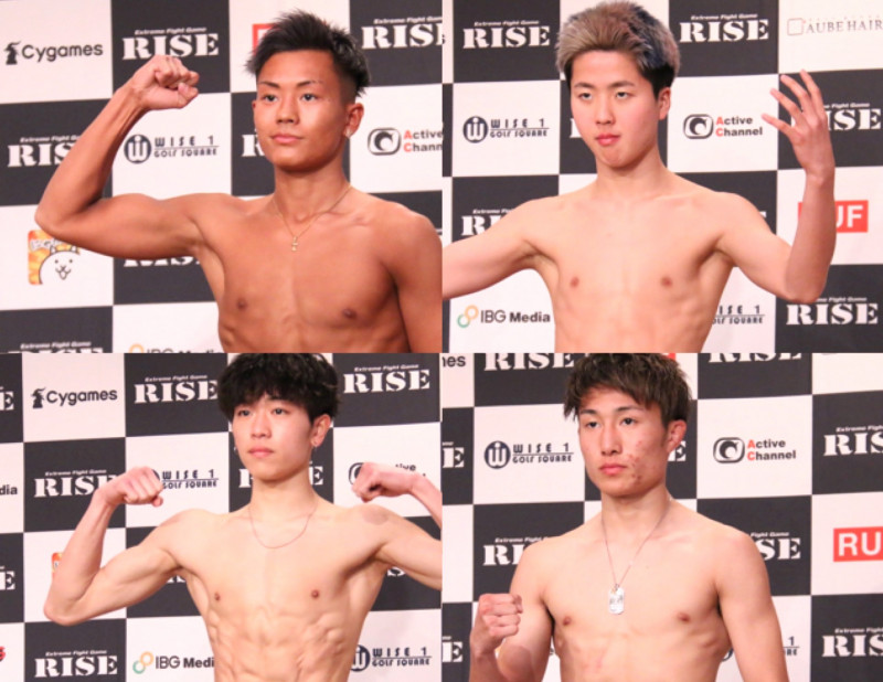フライ級トーナメントに出場する塚本(左上)、那須川(右上)、松本(左下)、空龍(右下)