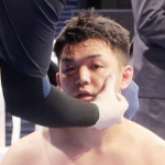 宮原がバッティングを受けた左目下の頬骨のあたりをチェックする大会ドクター(イーファイト撮影)