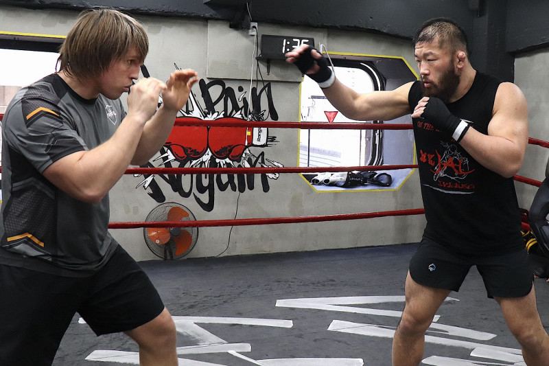 石井はヘビー級のスパーリングパートナを帯同して臨む