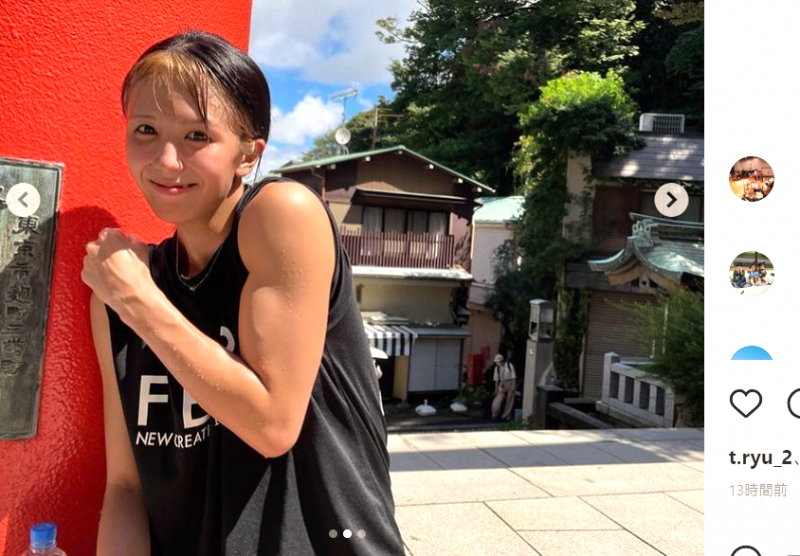 昨年9月、鍛えた上腕二頭筋を披露した菅原(@miyuu11224028)