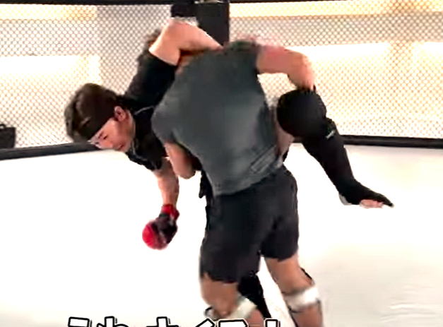 朝倉を投げようとした安井だが、耐えられてしまう(『安井飛馬チャンネル』)