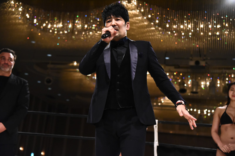 あいさつするバンゲリングベイの新田明臣代表