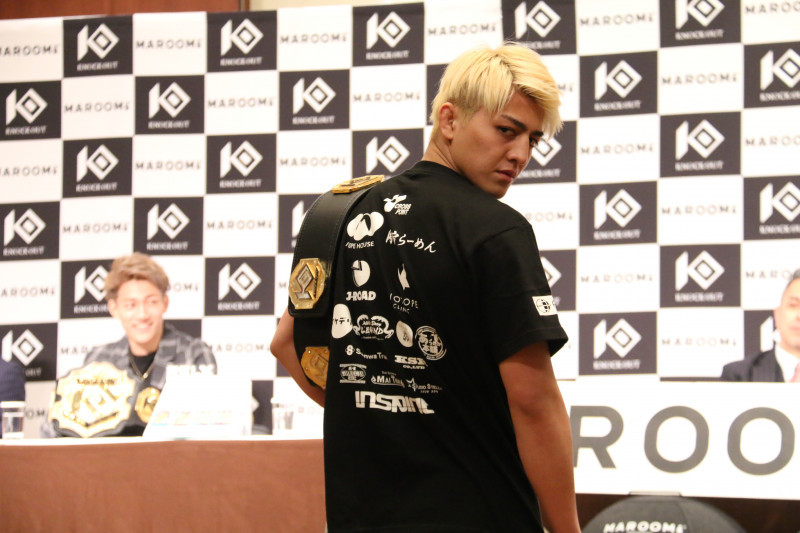 スポンサーのロゴを見せる鈴木