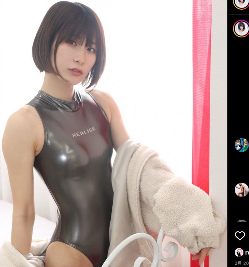 競泳水着姿の来栖うさこ(@kurusu_usakoより)