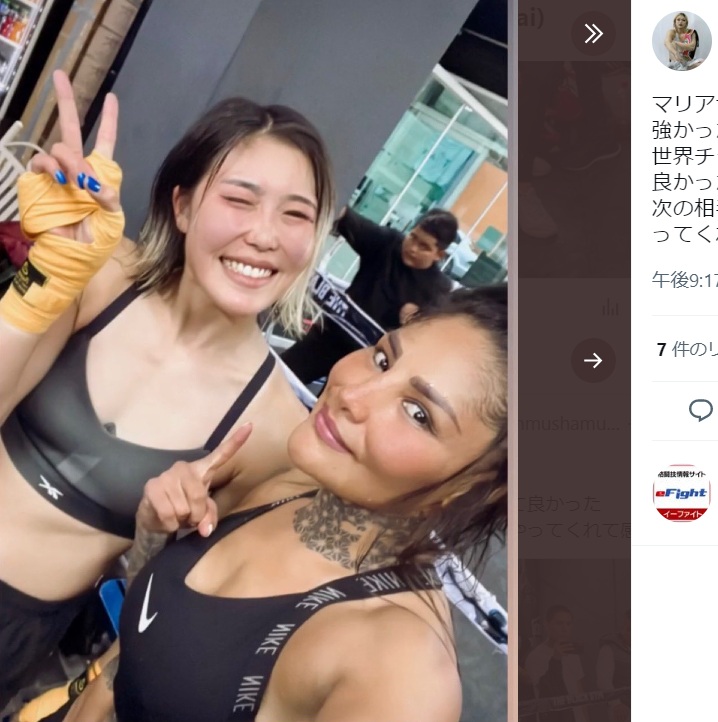 今秋にはメキシコ修行に、世界2階級制覇マリアナ・フアレスとスパーリング後2ショット @anpanmushamusha