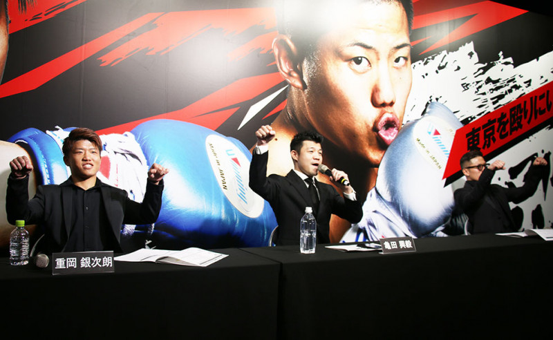 「サイコー!」(3150)の掛け声とポーズで会見を締める亀田ファウンダー