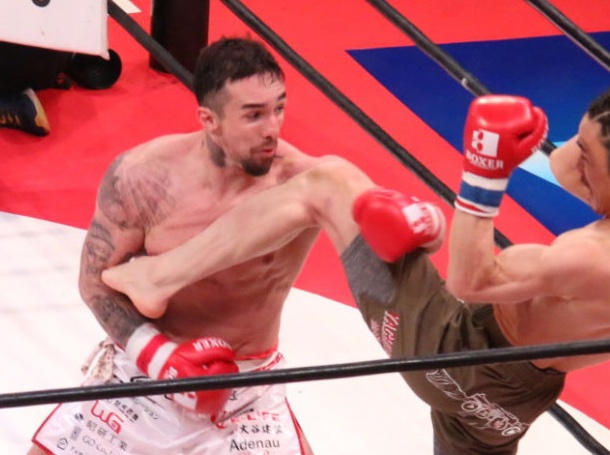 新しいタトゥーを入れる前の木村(左、昨年末の矢地祐介戦)。右腕のタトゥーが今回、新しくなった