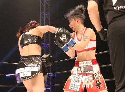 ぱんちゃんのパンチが坂本の顔面へ