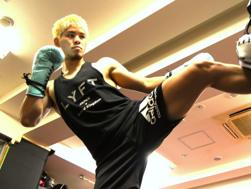 原口は公開練習でパワフルなミドルキックを披露した(C)RISE