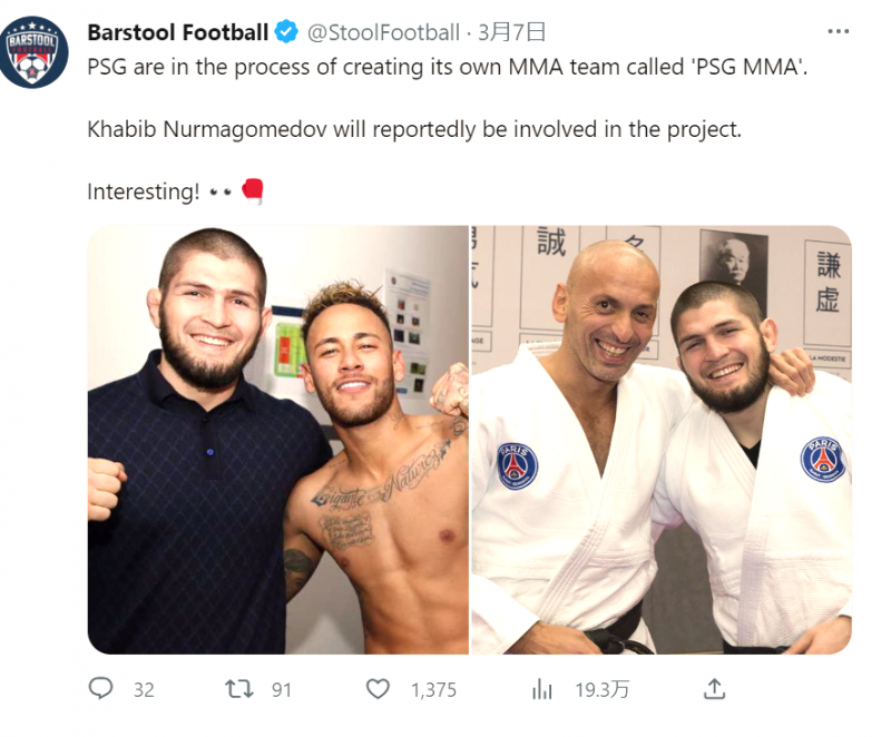 ヌルマゴメドフとネイマールのツーショット写真も(左写真、右がネイマール)@StoolFootball