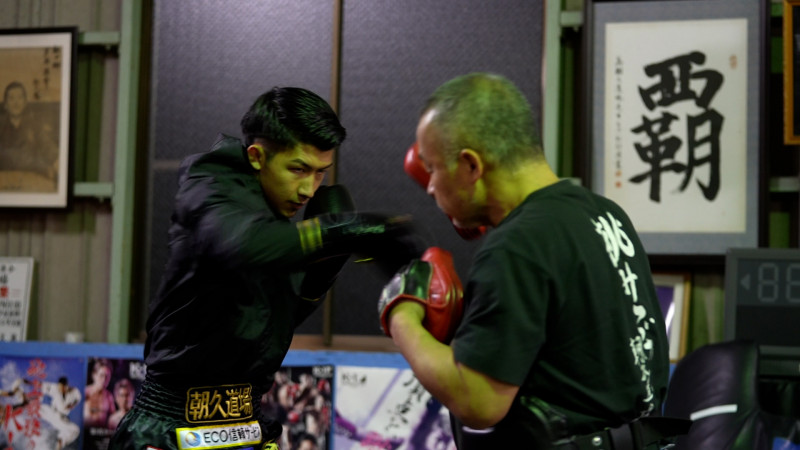 鋭いまなざしでミットを打つ朝久泰央(C)K-1