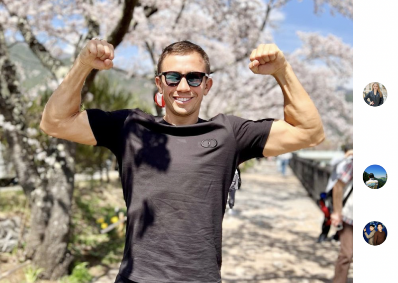 ゴロフキンが昨年4月に来日、桜の木下でポパイのような逞しい前腕を見せた(ゴロフキンSNSより)