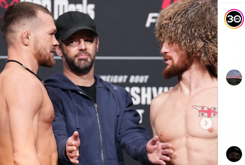 フェイスオフで睨み合うヤン(左)とドバリシビリ(右)@ufc