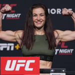 見事な腹筋を見せるミーシャ UFC JAPANでの前日計量にて=14年