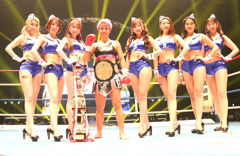 KANAとK-1ガールの記念撮影。K-1ガールが8名揃うのは、今回が最後だった
