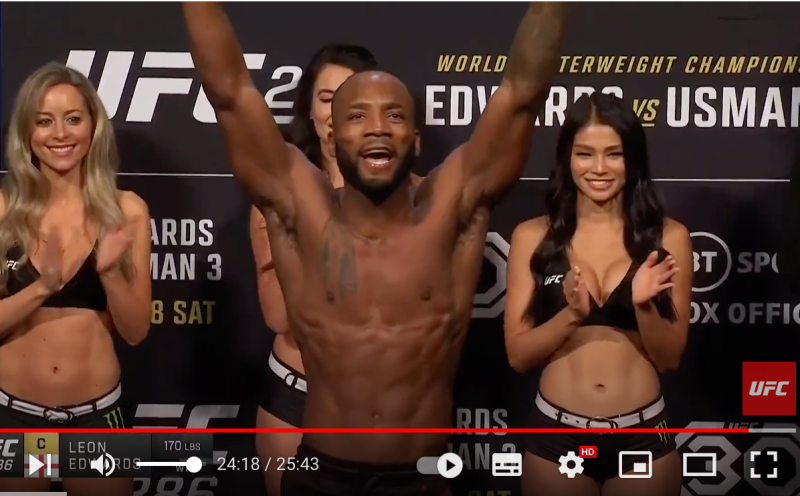 地元観客の声援に応えるエドワーズ(UFC公式youTubeより)