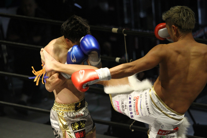 高橋は、城戸のキックで腕が赤く腫れても戦い抜いた