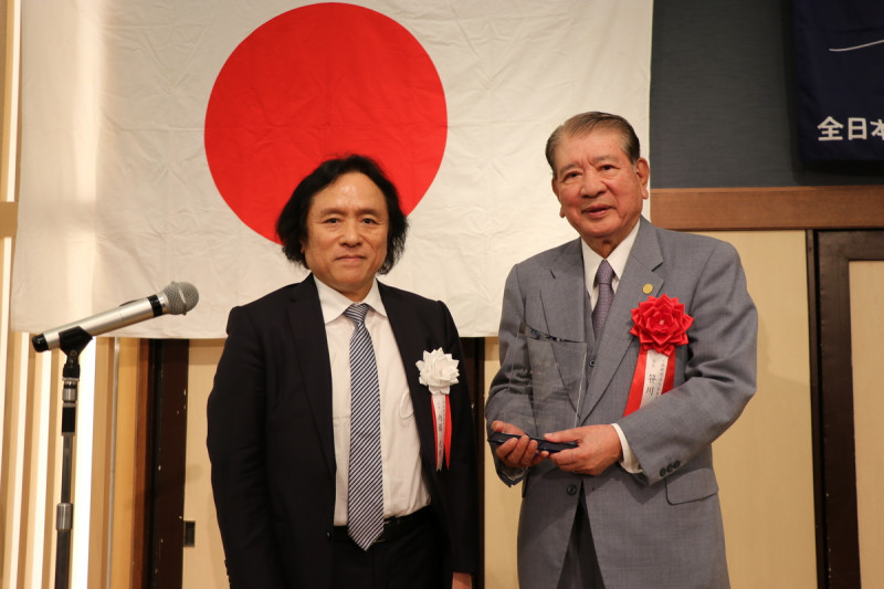 笹川会長には内藤光博連盟会長よりクリスタル製の感謝状が贈られた