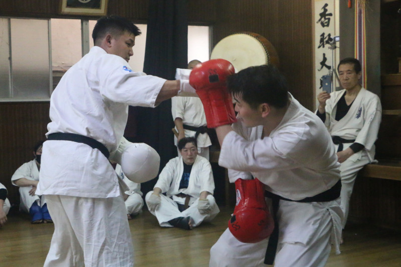 極真館全日本優勝・水野翔太(右)と、KWU世界大会準優勝の宮原穣(左)のスパーリング