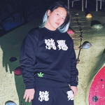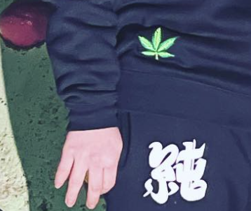 大麻のマークが入る”純悪”トレーナーを着るKINGレイナ(本人のインスタより)