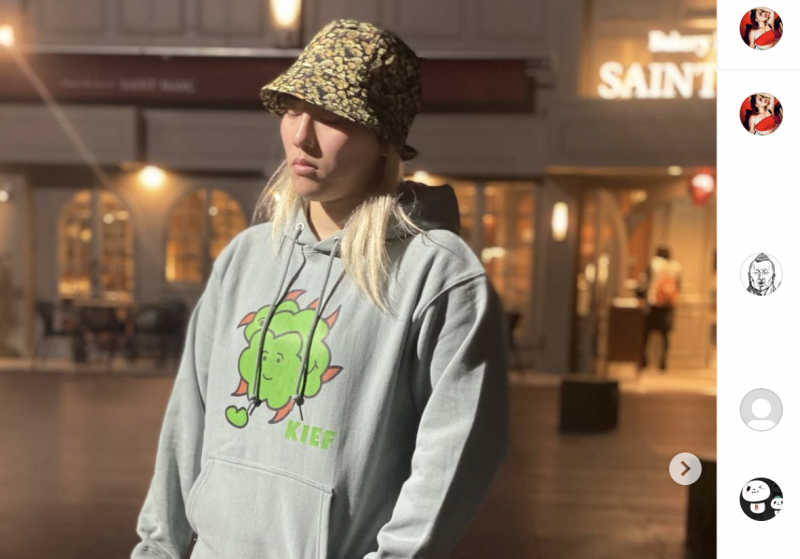 大麻のマークが入るパーカーを着るKINGレイナ(本人のインスタより)