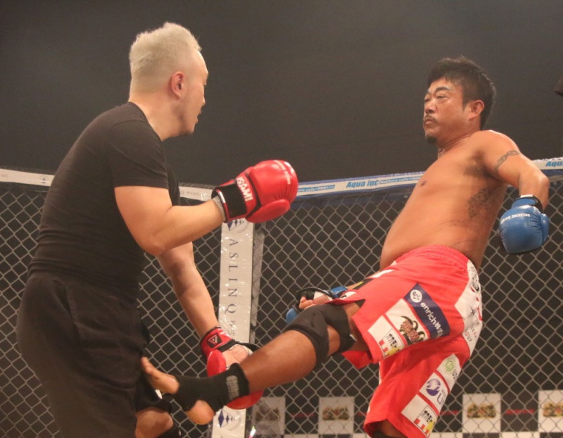 バンは蹴りを返した