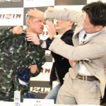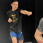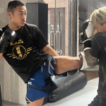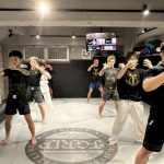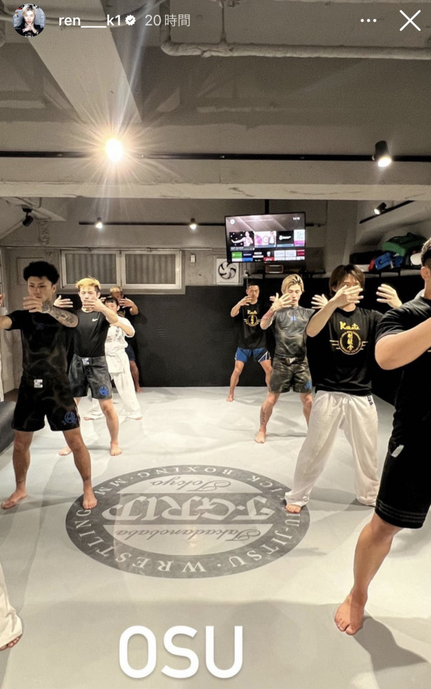 站椿(たんとう=立禅)を行う選手たち。平本や芦澤の姿も(剛毅會提供)