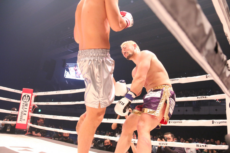 南原のヒザ蹴りで倒れる愛鷹(23年3月)