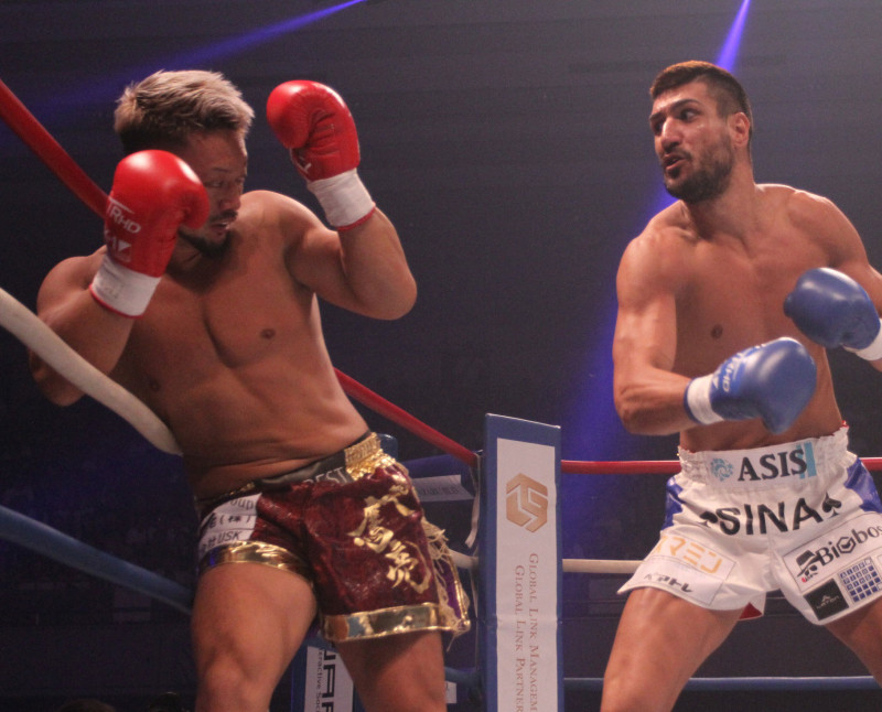 K-1王者カリミアン(右)と対戦した愛鷹(19年8月)