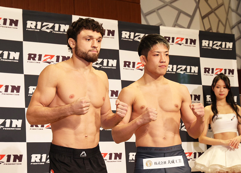 ヴガール・ケラモフ(左)と堀江圭功(右)が計量パスした