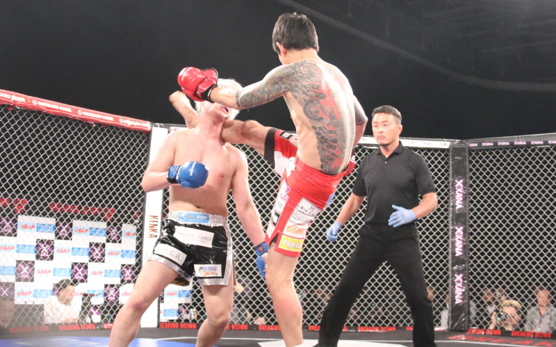 啓之輔の右ハイキックをもらってもジョリーは耐えた