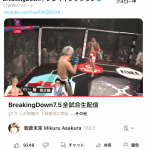 BD7.5のライブ配信が、同時接続数27万人を記録した(@breakingdown_jp)