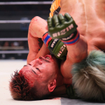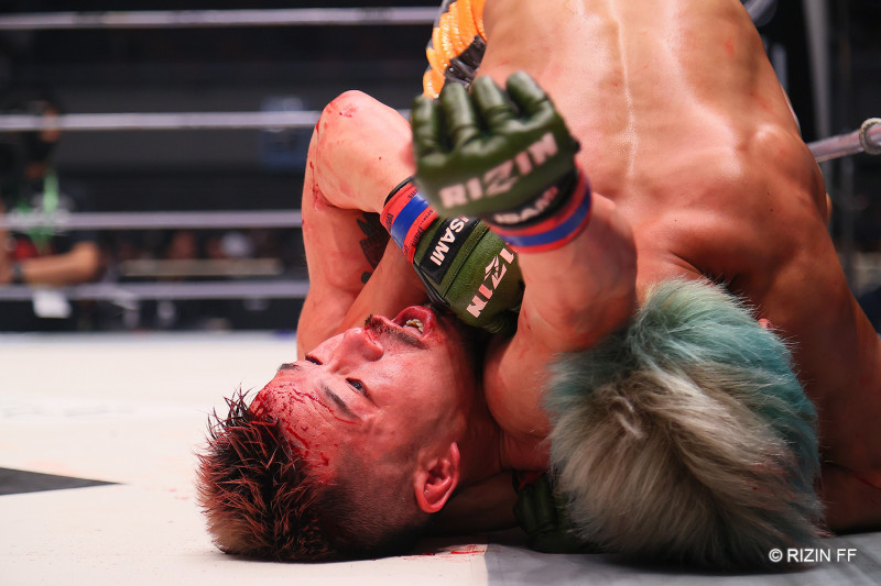顔面から出血する北方だったが試合は続行された