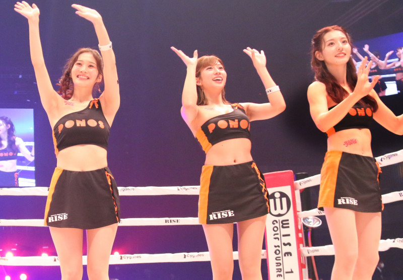 RISEラウンドガール左から高橋りん、大貫彩香、宮原華音