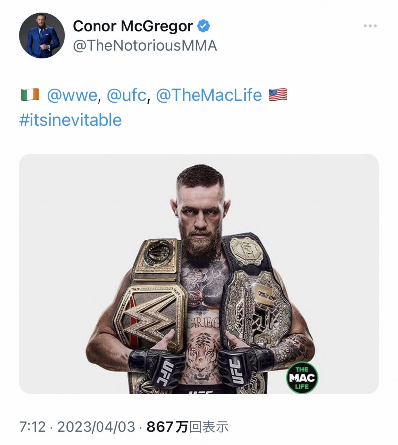 UFCとWWEのベルトを持つマクレガー @TheNotoriousMMA