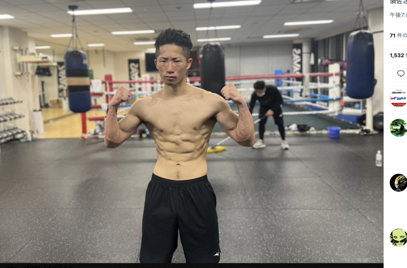 井上拓真が試合1週間前に絞ったバキバキボディ公開(井上拓真twitterより)