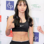 松谷のハイキックがヒット=22年2月、豊嶋戦