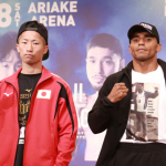 井上拓真、スーパーバンタム級の時の計量写真、身体が大きく見える(22年12月)