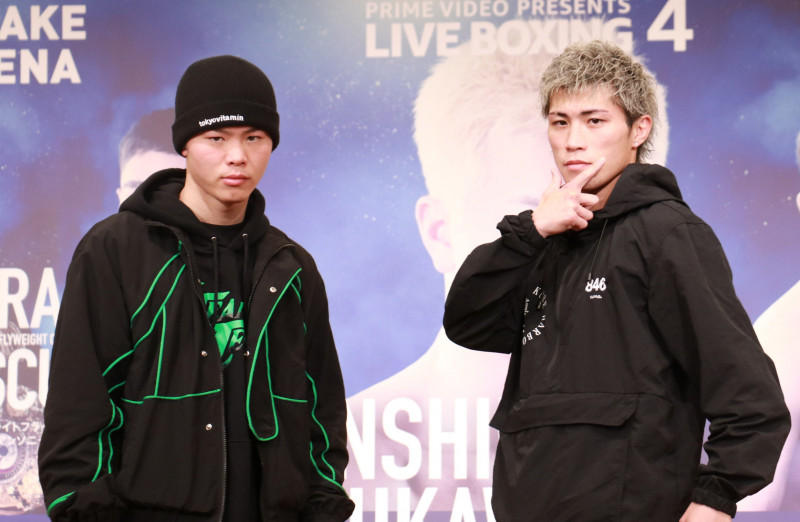 試合2日前に会見を行ったデビュー戦の那須川天心(左)と日本バンタム級2位・与那覇