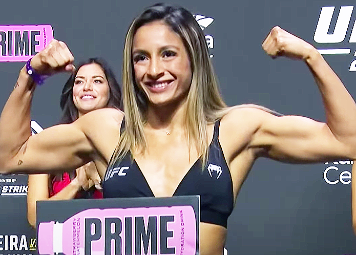 柔術美女アモリム、マッスルポーズで計量パス!©️UFC公式YouTubeより