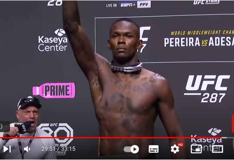 仕上がった肉体で登場のアデサンヤ(UFC公式youTubeより)