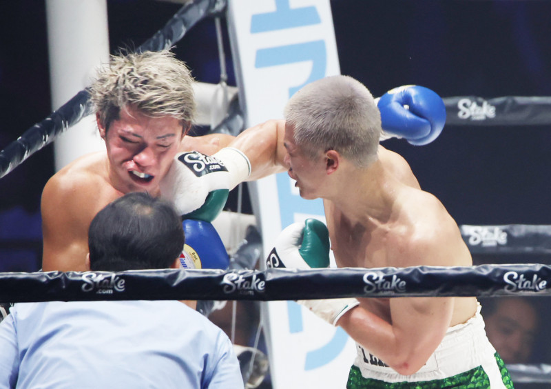 那須川の右がクリーンヒット、与那覇の顔がゆがむ